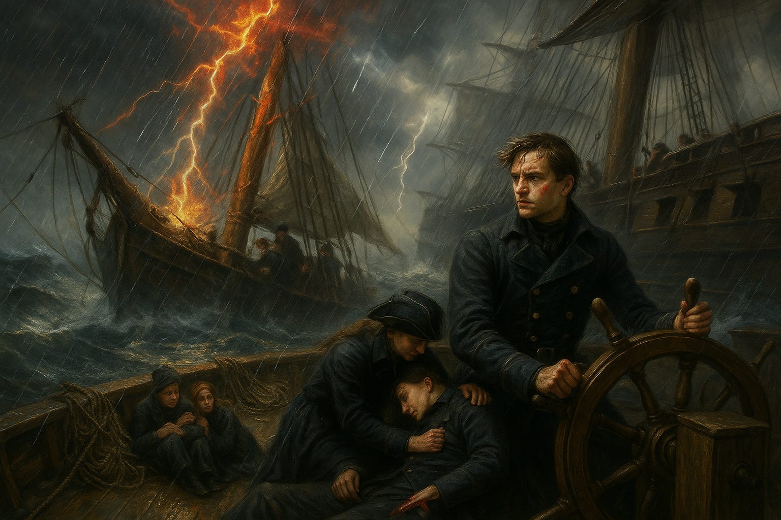 Swift quickly scanned the water and evaluated the situation with all three vessels. Booming thunder, arcing lightning, high winds, and torrential rain were daunting enough. Sea Wraith’s stolen merchandise added another level of complexity to an already formidable mission. Worse, that stolen merchandise was a cargo of enslaved people. Human beings!